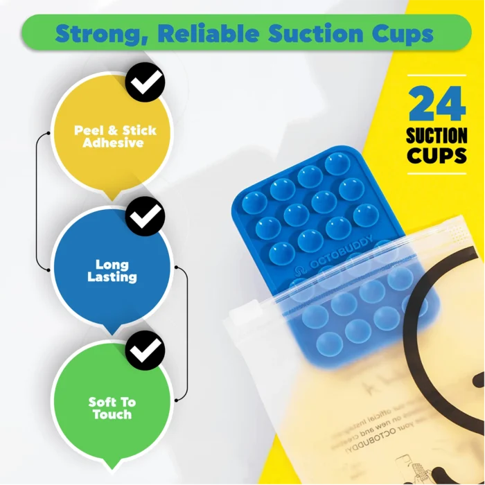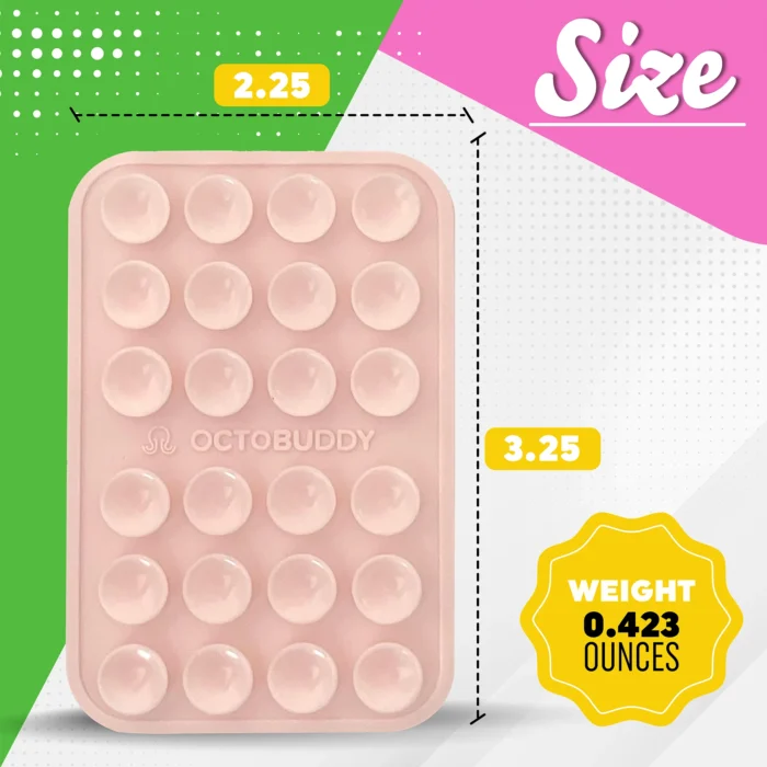 * Cute, Hands-Free Phone Holder – This innovative phone suction cup mount for cell phone cases attaches to the back of your smartphone and lets you adhere it to mirrors, windows, and other clean, flat surfaces for taking videos or photographs * Strong, Reliable Suction Cups – We fitted each cell phone case holder sticker pad with 24 individual suction cups to provide a stronger, more reliable hold, so you can worry less about it falling or dropping while you’re capturing great shots. * Capture Epic Videos and Photos – Ideal for online influencers, people who make TikTok videos, or shooting content for Instagram. This silicone cell phone mount for cases helps you create shareable content completely hands free. * Peel-and-Stick Adhesive Backing – Our non-slip silicone pad sticky grip mount attaches to almost any standard (smooth) cellphone case which makes it compatible with iPhone, Samsung Galaxy, HTC, Note, and other common phone brands. * Trusted Quality Assurance – Every OCTOBUDDY is backed by long-lasting durability, and quality control you can count on, so you can be sure you’re getting a product that fits your everyday, on-the-go lifestyle.